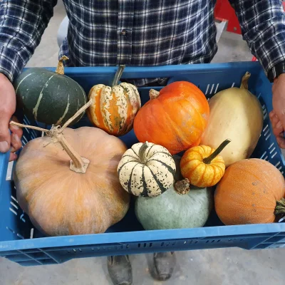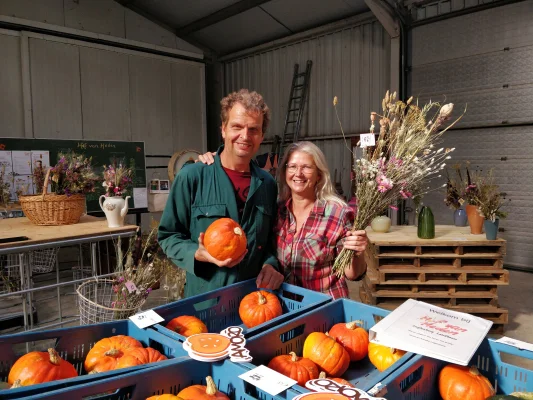 Vergeet ook onze pompoenen* rode en gele uien en aardappels niet. Ze zijn overheerlijk! Pompoenen: *oranje Amoro, groene en grijze hokkaido, sweet dumpling en... spaghetti pompoenen. Recepten en bereidingstips delen ze graag met jullie. Want lekker zijn ze allemaal!