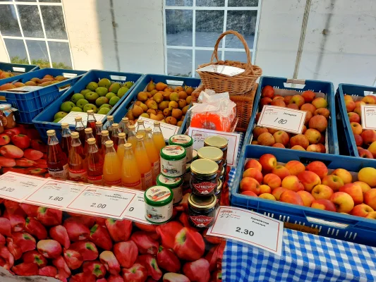 Welkom bij ons kraampje! Elke zaterdag zijn wij tussen 9.00 uur en 12.00 uur geopend. Wij verkopen dan appels en peren uit eigen boomgaard aangevuld met diverse andere fruitsoorten en groenten van het seizoen. Ook hebben we sap geperst van fruit uit eigen boomgaard, huisgemaakte producten, diverse stropen en jammetjes, bakmixen, streekproducten als snoepjes, kaas, bier en wijn, heerlijke fruitchocolade, cadeauverpakkingen en leuke pakketjes.