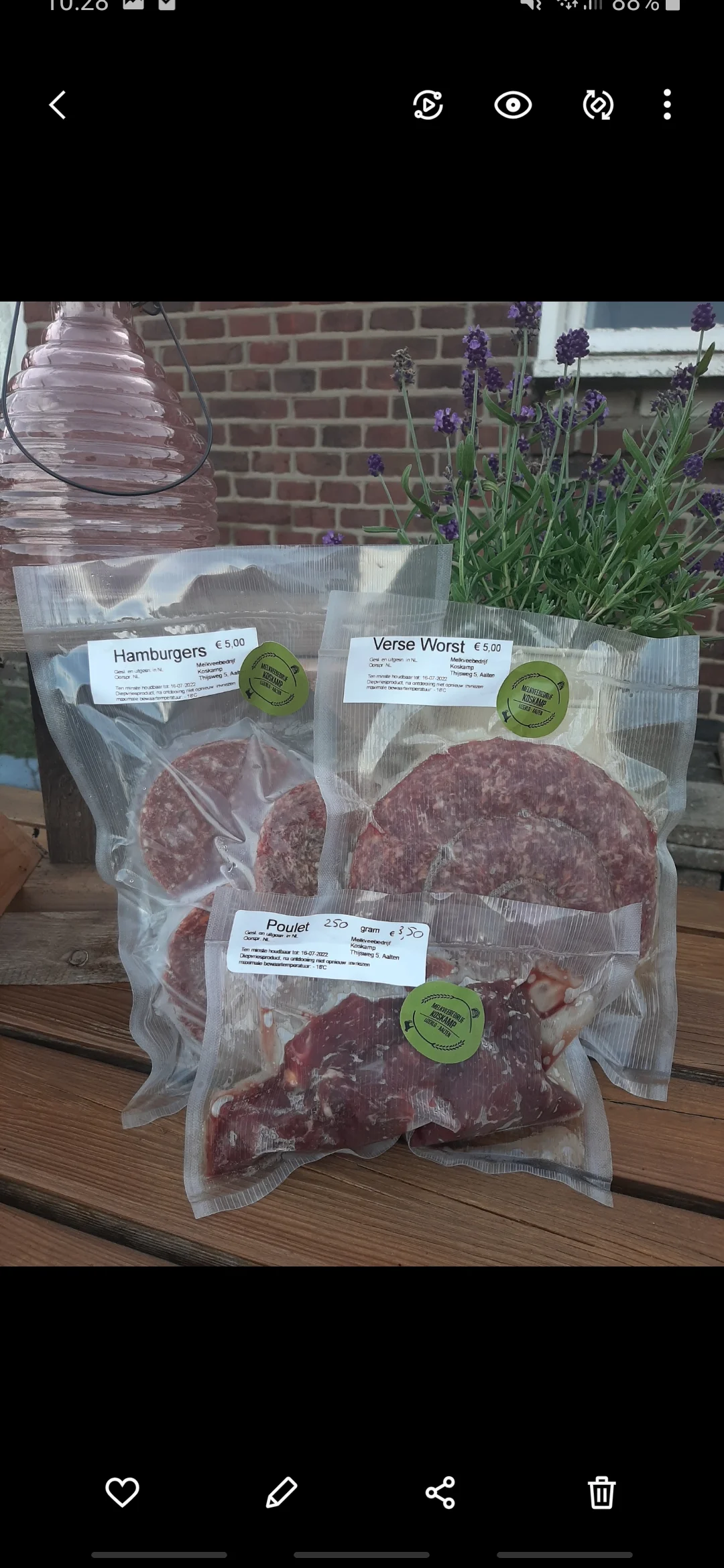 Disclaimer: Deze pagina wordt beheerd door de eigenaar of medewerker van desbetreffend boerderij verkooppunt. De boer beleeft vaak drukke tijden. Het kan daarom zijn dat de gegevens op deze pagina niet altijd actueel zijn. Daar kunnen wij van Lekkerder bij de Boer helaas niets aan doen. Zie ook onze Algemene Voorwaarden.