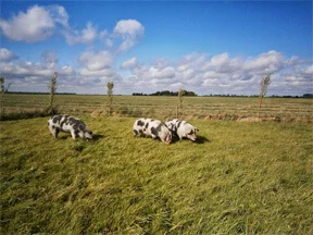 Bij ons hebben de varkens alle mogelijkheden om ook echt varken te zijn. Ze lopen het hele jaar door buiten in ruime weides waar ze heerlijk kunnen wroeten en lekker kunnen luieren in een modderpoel. Zo komt veel natuurlijk gedrag weer terug en hebben de varkens geen stress. Ieder varken krijgt bij ons alle tijd om te groeien in zijn eigen tempo.